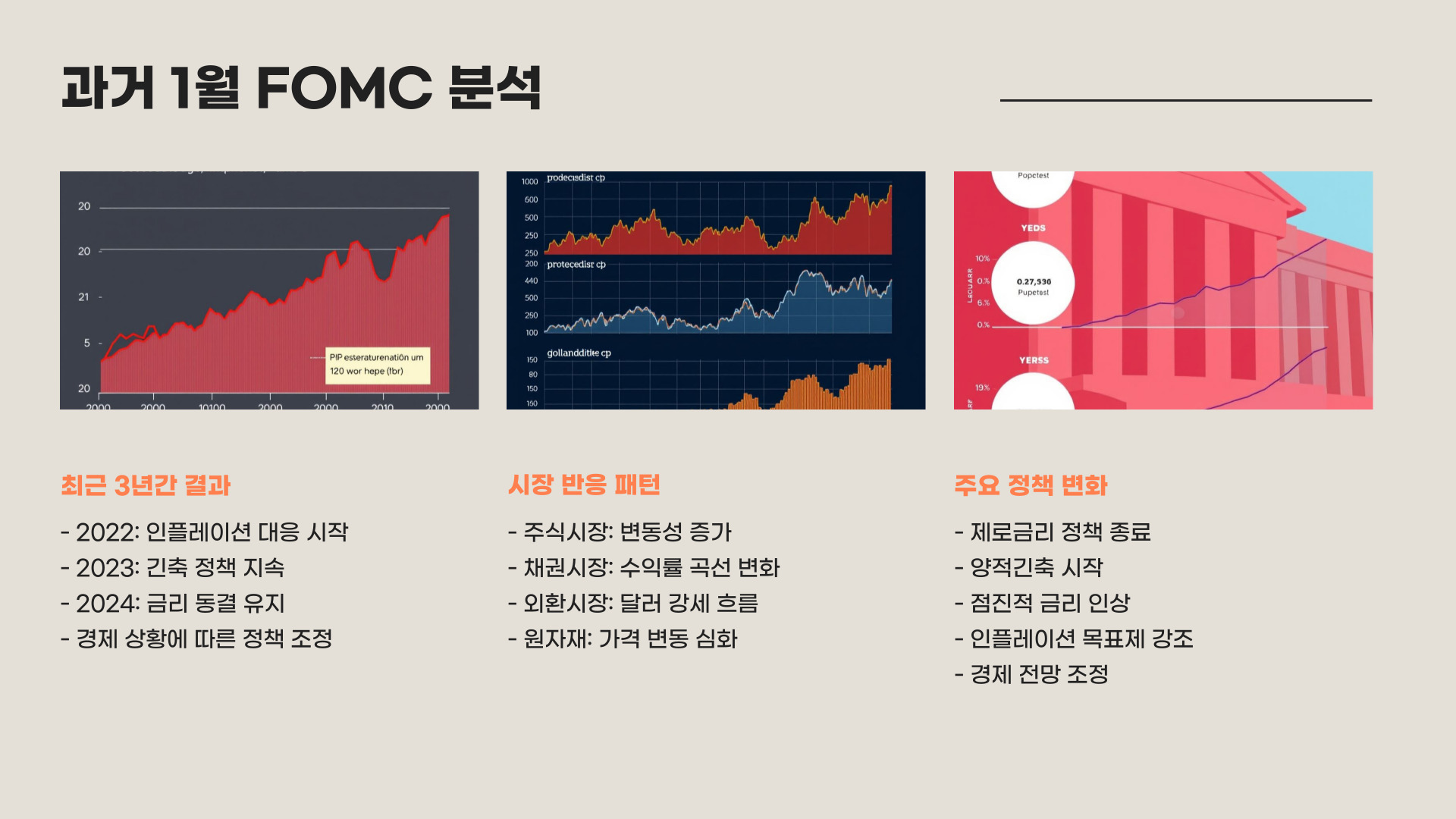 1월 FOMC 일정은 매년 초에 진행되며, 경제 전망을 공유하고 금리 정책을 재조정하는 중요한 시기입니다. 이 회의에서는 글로벌 경제와 인플레이션, 고용 상황 등을 종합적으로 고려하여 금리 조정 여부를 결정합니다. 특히 올해는 인플레이션 압력이 지속되고 있어 금리 인상 여부가 주목받고 있습니다.