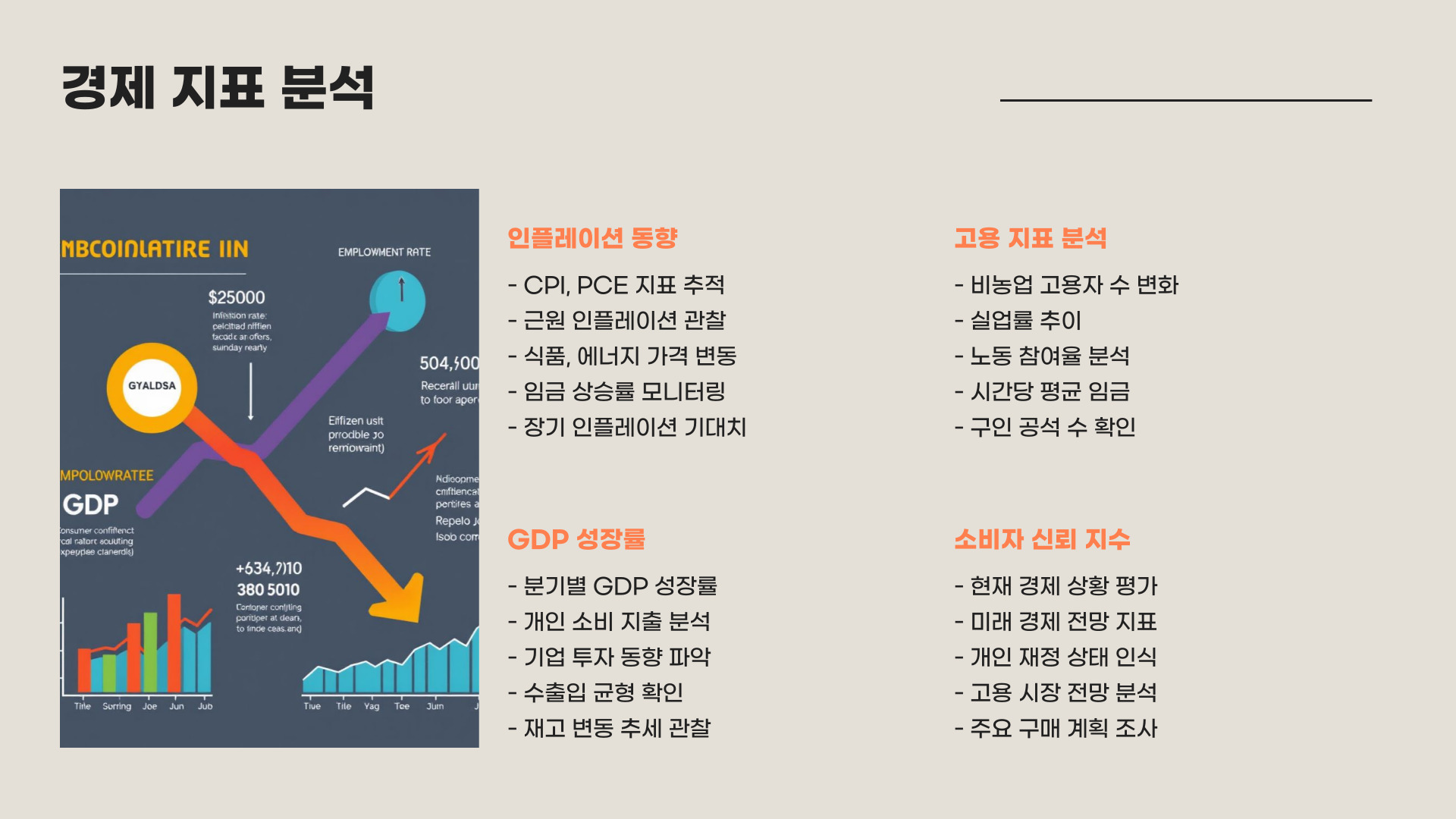 - 경제 지표 분석: CPI, GDP 성장률 등 주요 경제 지표를 사전 분석하여 금리 변화 예측.