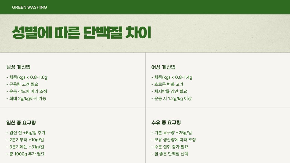 - 체중(kg) × 단백질 섭취 비율로 1일 단백질 필요량 계산.