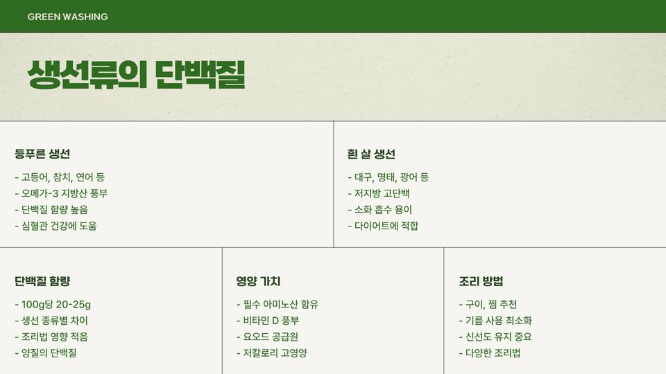 - 육류, 생선, 계란 및 식물성 단백질을 포함한 다양한 식품 선택.