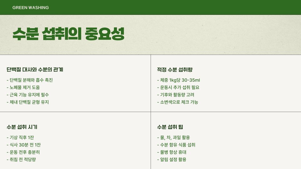 단백질 섭취는 중요하지만 과도한 섭취는 신장에 부담을 줄 수 있습니다. 따라서, 단백질 섭취량을 정할 때는 자신의 건강 상태를 고려해야 합니다. 특히, 신장 질환이 있는 경우에는 단백질 섭취량을 제한해야 할 수 있습니다. 또한, 단백질 보충제를 사용하기 전에 전문가와 상담하는 것이 좋습니다. 자연식품을 통해 충분한 단백질을 섭취하는 것이 가장 바람직합니다.