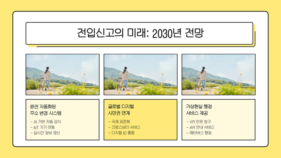 특히, 일부 지방자치단체에서는 AI 기술을 활용하여 전입신고를 자동으로 처리하는 시스템을 도입하고 있습니다. 이러한 혁신적인 변화는 전입신고의 효율성을 크게 향상시키고, 주민들의 만족도를 높일 것으로 기대됩니다.