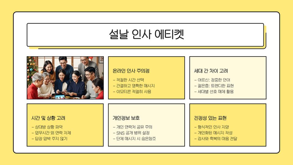 - 설날 인사는 정성을 담아 전하는 것이 중요함.