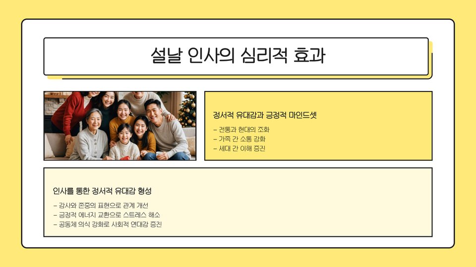 - 새해 인사는 유대감을 강화하는 중요한 수단이다.