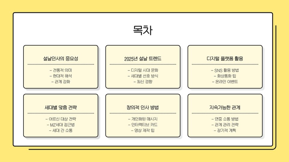 2025년 설날에 적절한 인사를 전하는 것은 관계를 강화하고 따뜻한 감정을 나누는 데 매우 중요합니다. 이 글에서 제안한 다양한 인사말과 전통적인 방법, 디지털 플랫폼을 통한 인사 법을 참고하여 값진 새해를 맞이하시기 바랍니다. 적절한 인사로 소중한 이들에게 행복과 희망을 전해보세요!