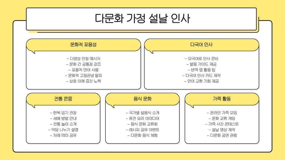 설은 대한민국에서 가장 중요한 명절 중 하나로, 가족들이 모이고 조상들에게 감사의 마음을 전하는 시기입니다. 이러한 맥락에서 인사말은 단순한 의례가 아니라, 우리 정서를 공유하고 소중한 사람들과의 유대를 더욱 강화하는 역할을 합니다. 예를 들어, 가족과의 만남에서 "새해 복 많이 받으세요!"라고 말하는 것은 서로의 행복과 건강을 기원하는 따뜻한 메시지를 전달하는 것입니다.