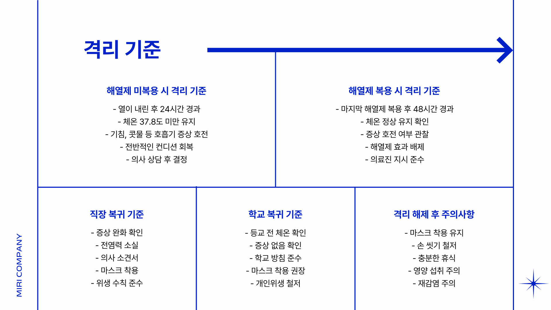 - 증상 완화: 충분한 수분 섭취, 휴식, 진통제 사용