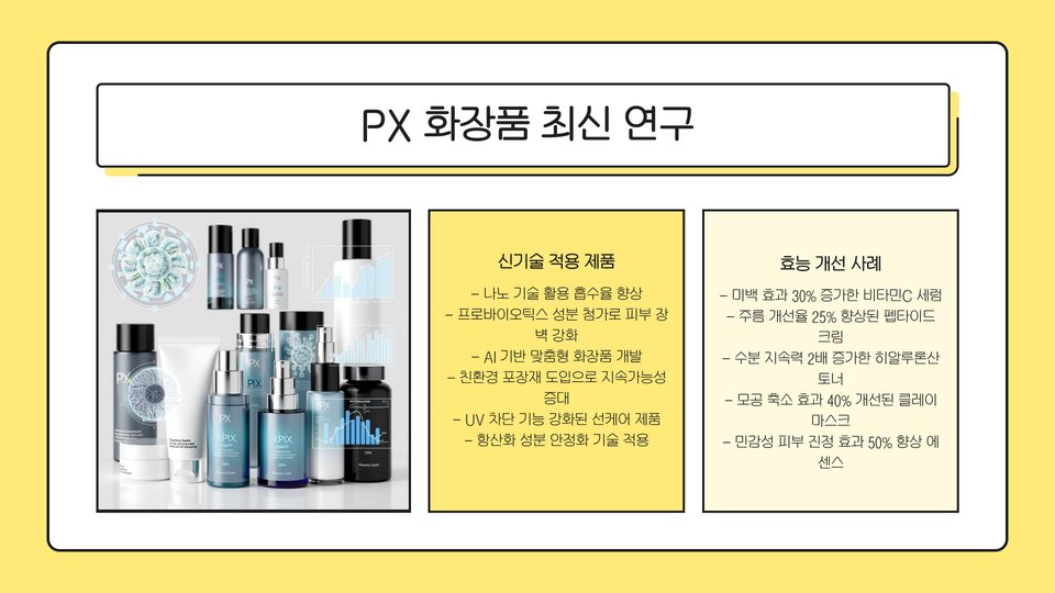 첫 번째로, px 화장품은 품질과 혁신성을 자랑합니다. 특히, 첨단 기술을 활용한 성분들이 함유되어 있어 피부 트러블 개선에 효과적입니다. 예를 들어, 수분을 공급하고 자극을 줄여주는 성분들이 포함되어 있어, 민감성 피부를 가진 소비자들에게 인기가 높습니다.