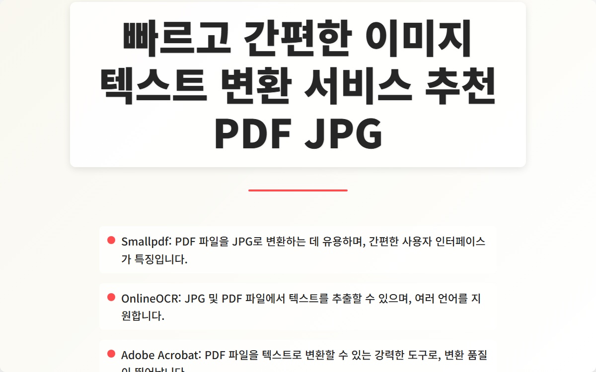 빠르고 간편한 이미지 텍스트 변환 서비스 추천 PDF JPG
