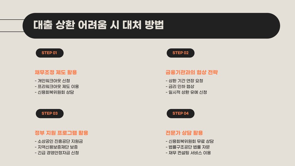 - 이자율은 금융기관에 따라 상이하므로 사전 조사가 필요.