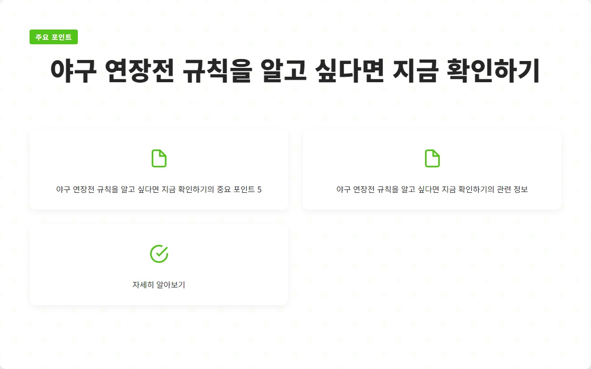 야구 연장전 규칙을 이해하는 것은 경기를 즐기는 데 큰 도움이 됩니다. 다음은 간단한 요약입니다: