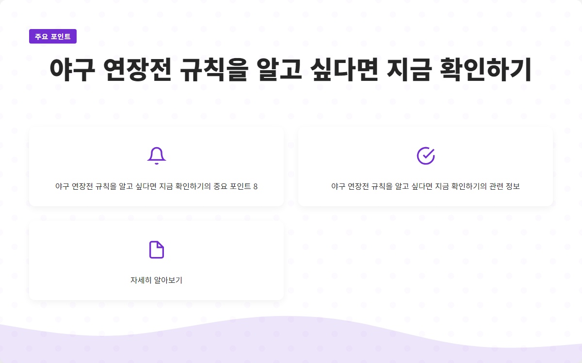 3. **온라인 자료 활용하기**: 야구 관련 블로그나 유튜브 채널에서 연장전 규칙에 대한 콘텐츠를 찾아보며 추가적인 정보를 얻는 것도 좋은 방법입니다.