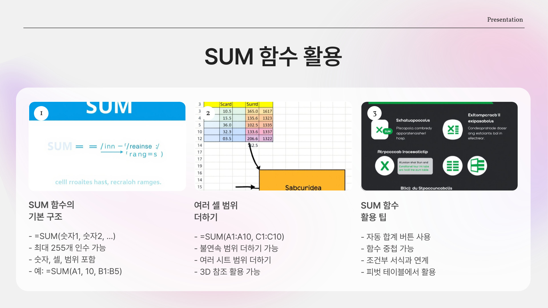 - SUM 함수를 활용하면 대량의 데이터를 쉽게 처리할 수 있습니다.