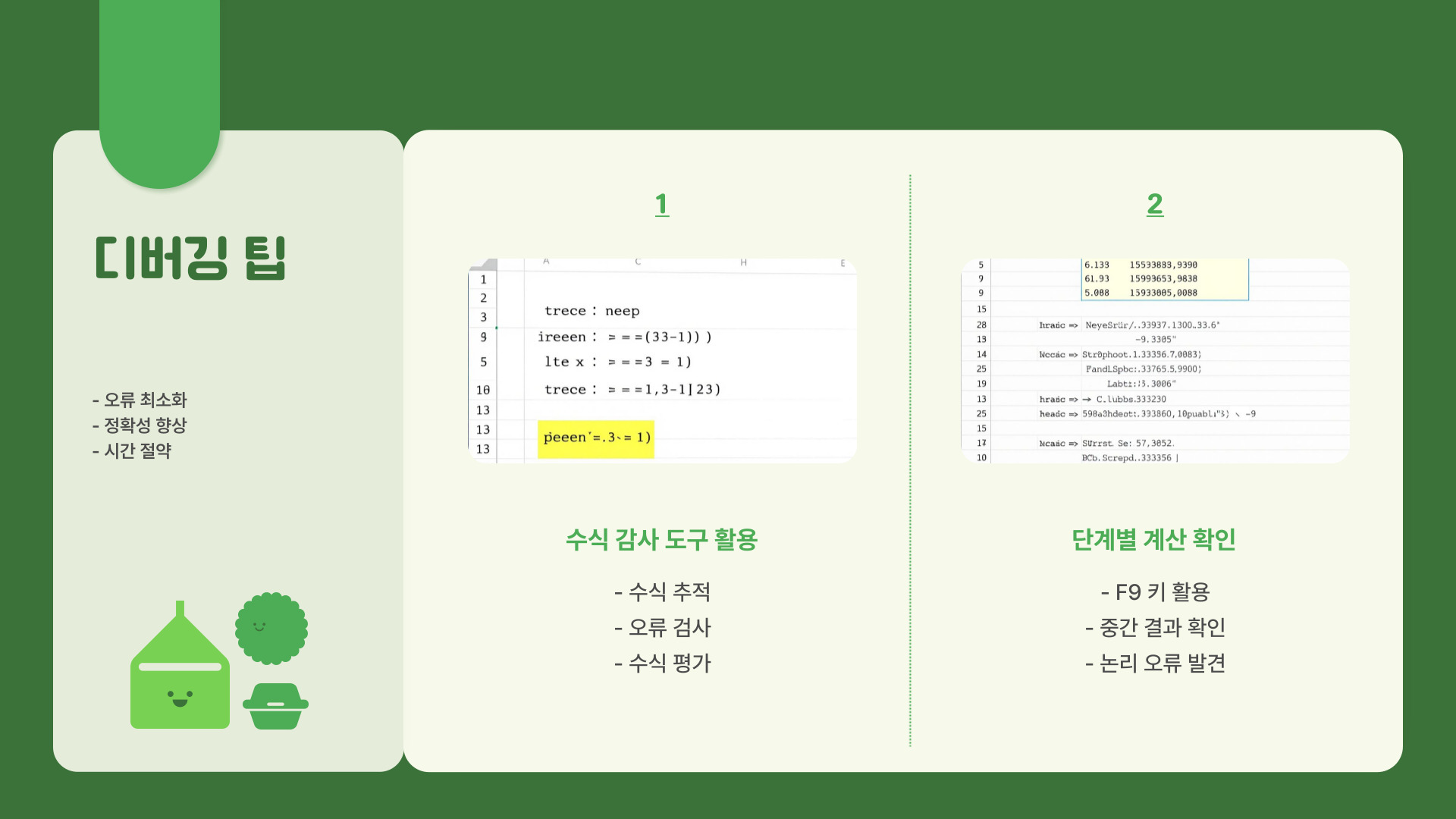 둘째, 수식의 가독성을 높이기 위해 적절한 주석을 달아주는 것이 중요합니다. 복잡한 수식을 사용하는 경우, 각 수식의 목적을 주석으로 남겨두면 나중에 이해하기 쉬워집니다. 또한, 친숙한 이름으로 셀을 정의하면, 수식 작성 시 한눈에 목적을 쉽게 파악할 수 있습니다.