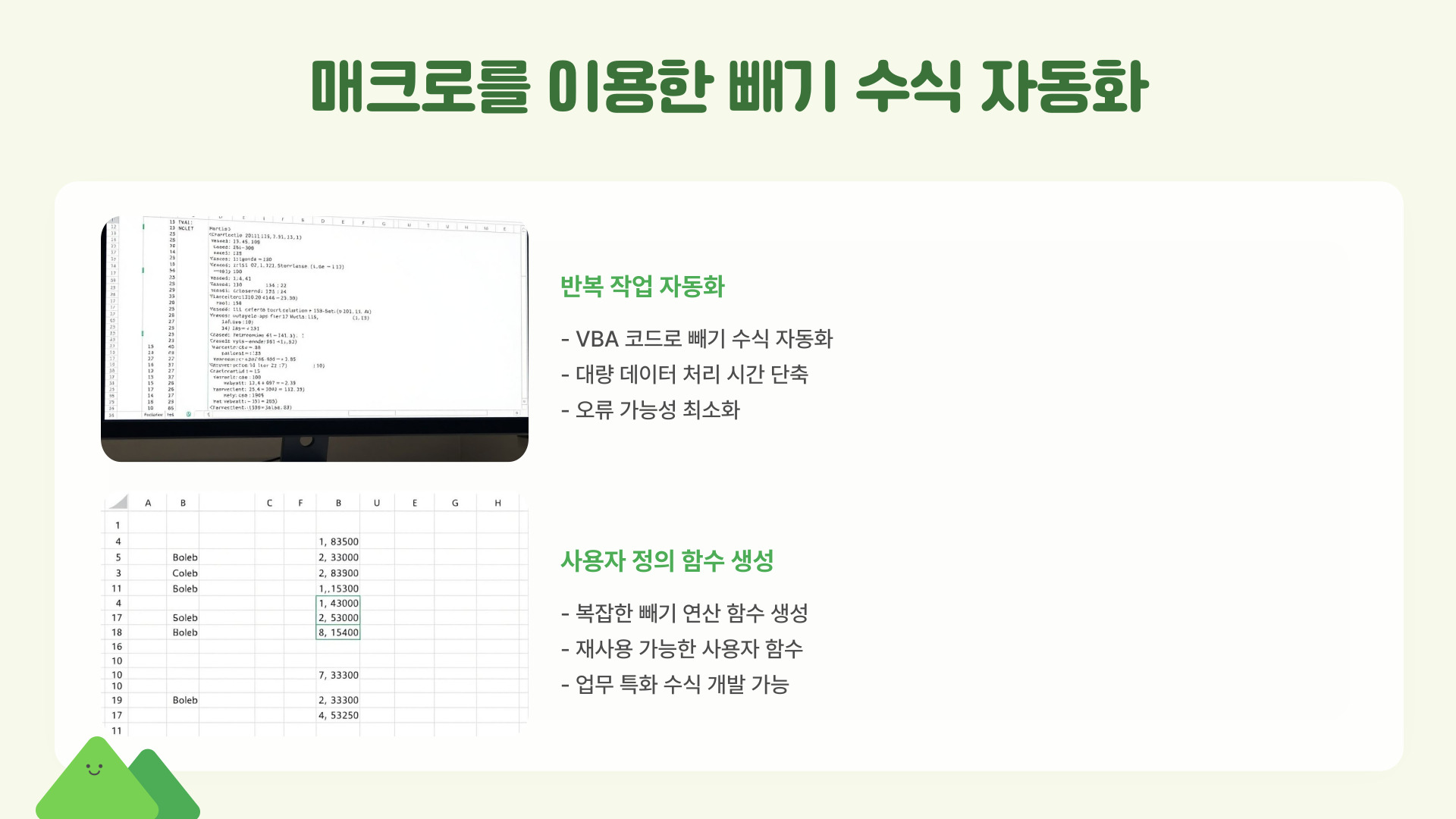 - 반복적인 계산 작업을 자동화하여 시간을 절약할 수 있습니다.