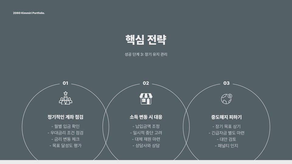 | 2단계 | 철저한 저축 계획 수립 및 지출 관리 |