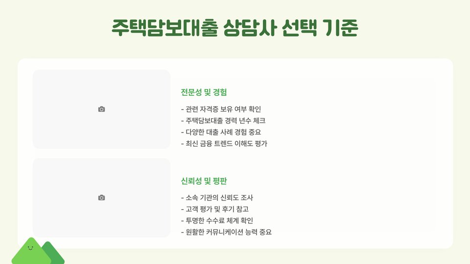 Tags: 주택담보대출, 상담사 추천, 대출 절차, 금융 상담, 주택 구매, 이자율, 대출 조건, 신용 점수, 금융기관, 주택담보대출 상담