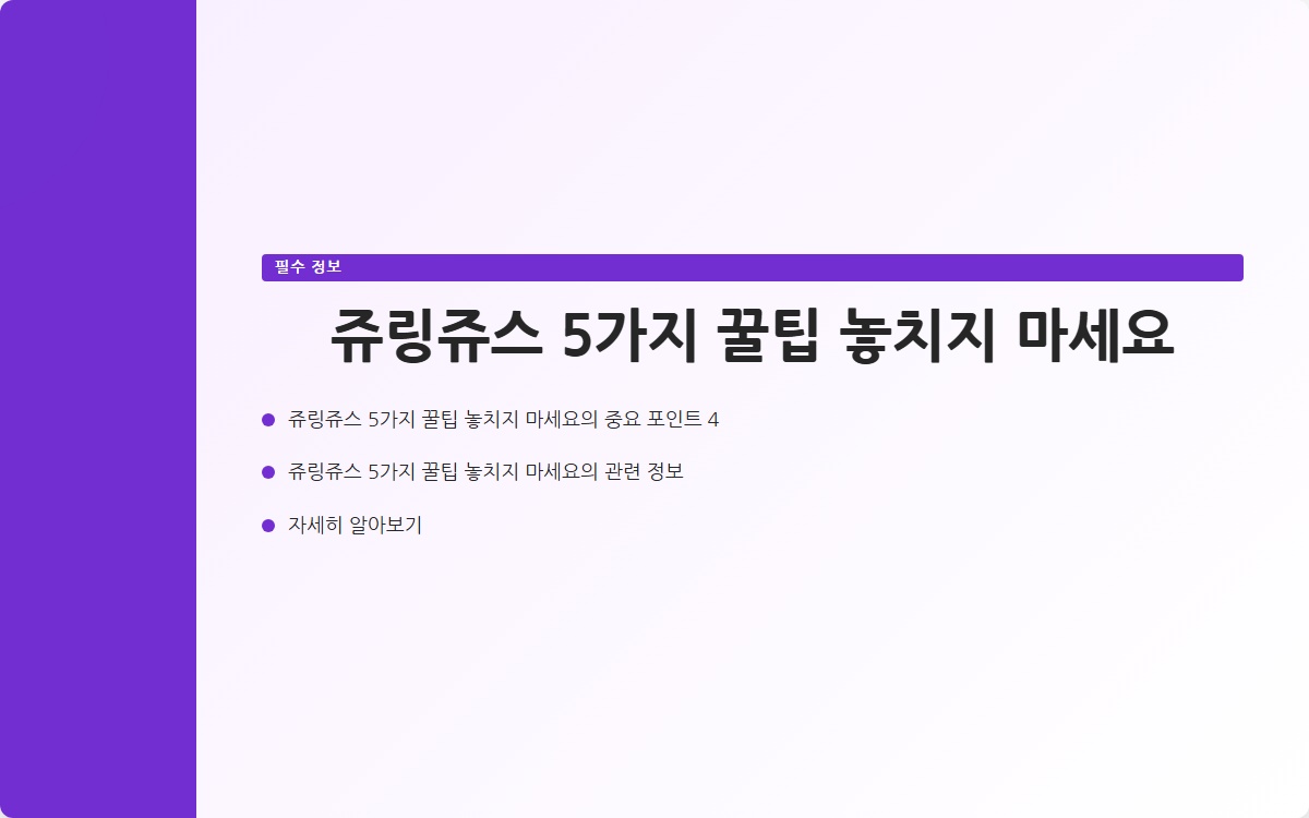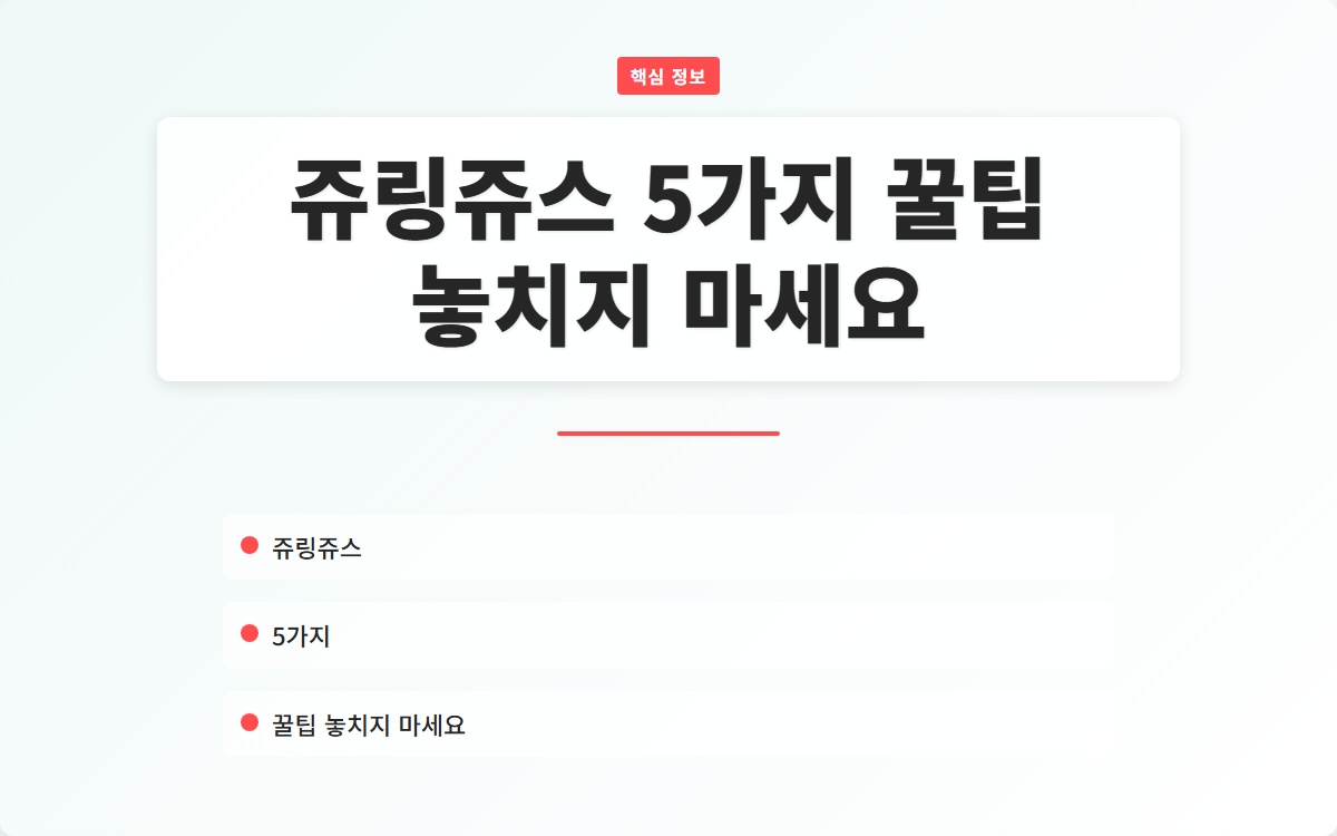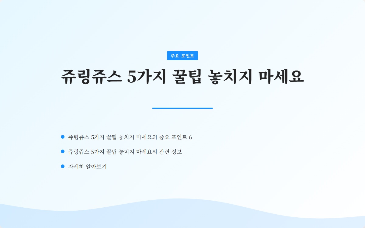 여러분은 쥬링쥬스를 제대로 활용하고 계신가요? 많은 사람들이 쥬링쥬스를 사용하면서도 그 효과를 제대로 느끼지 못하고 있습니다. 이 글을 통해 쥬링쥬스의 5가지 꿀팁을 소개할 예정입니다. 지금 확인해보세요!