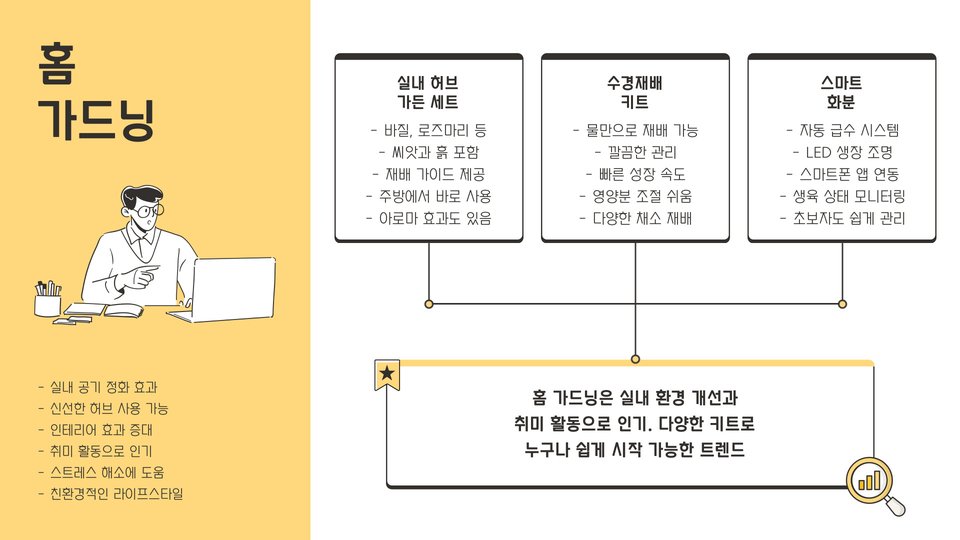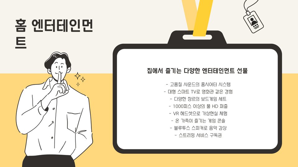 | 스마트 홈 기기 | 집안의 편리함을 더해주는 기기 |