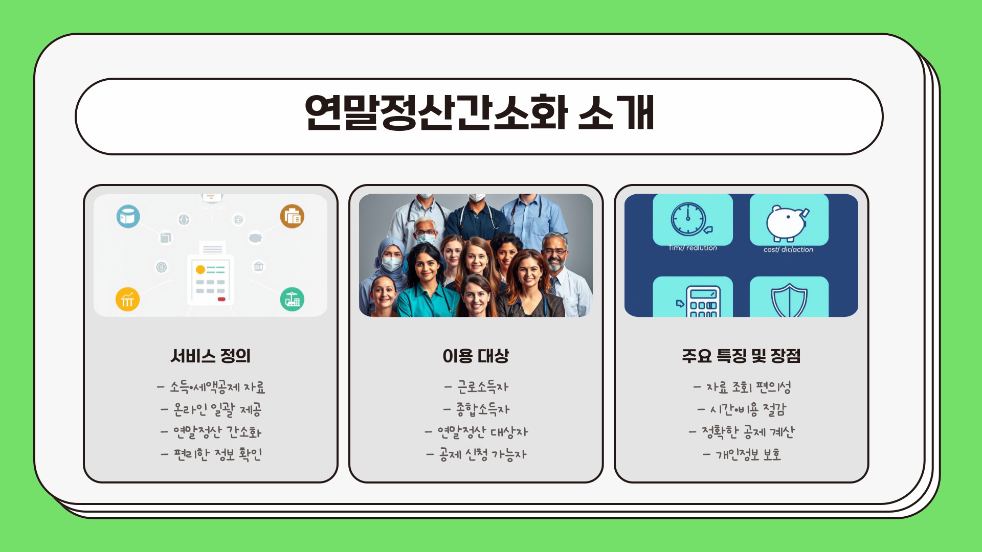 - 연말정산 간소화 서비스는 시간과 비용을 절약해 줍니다.